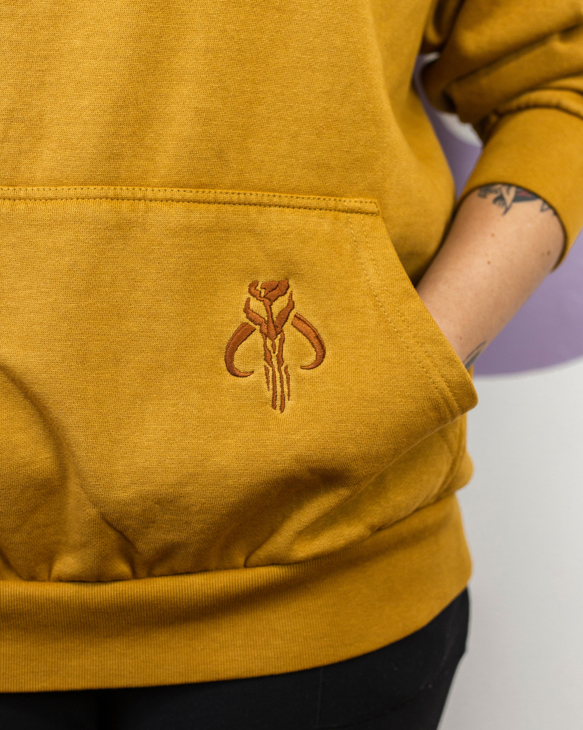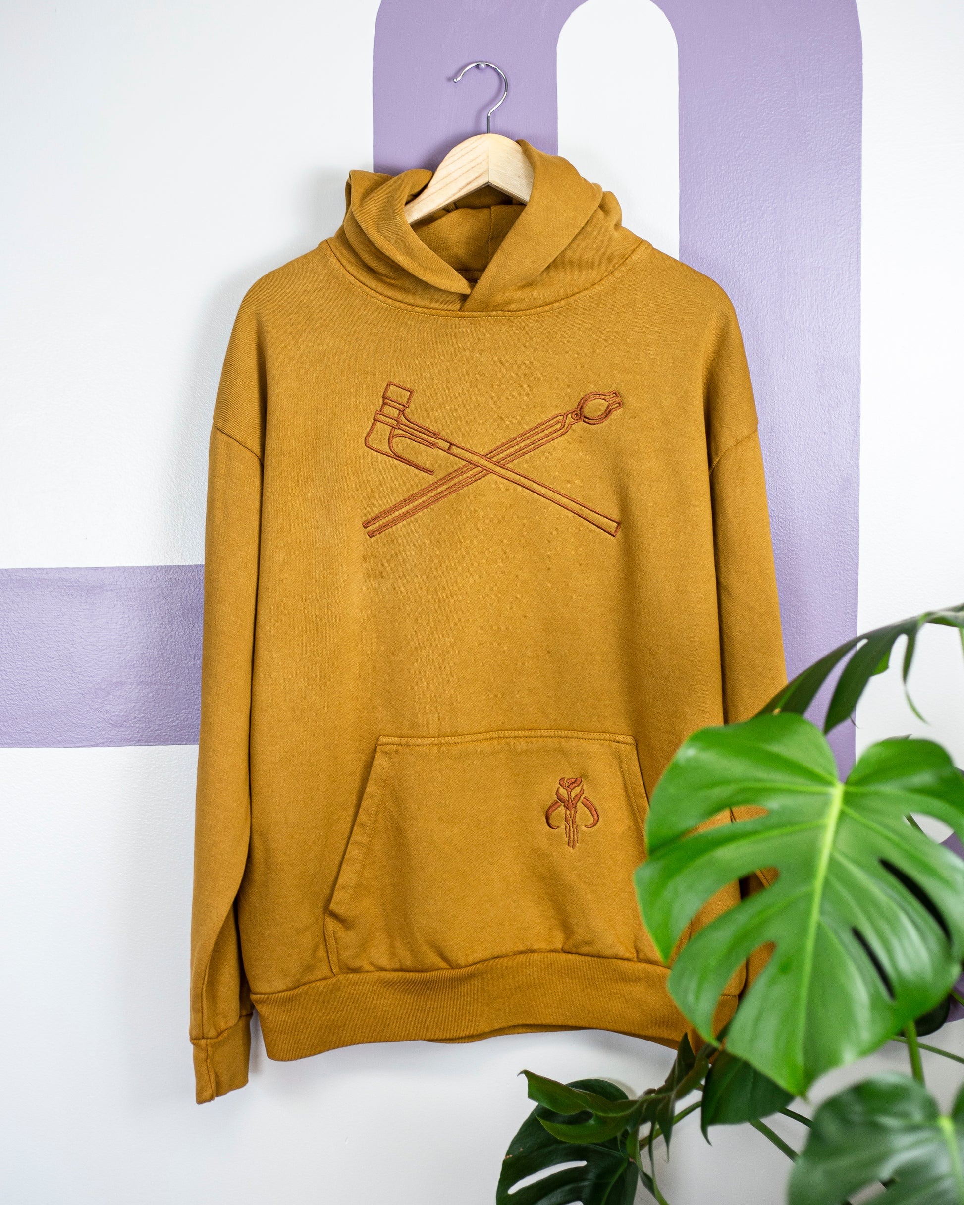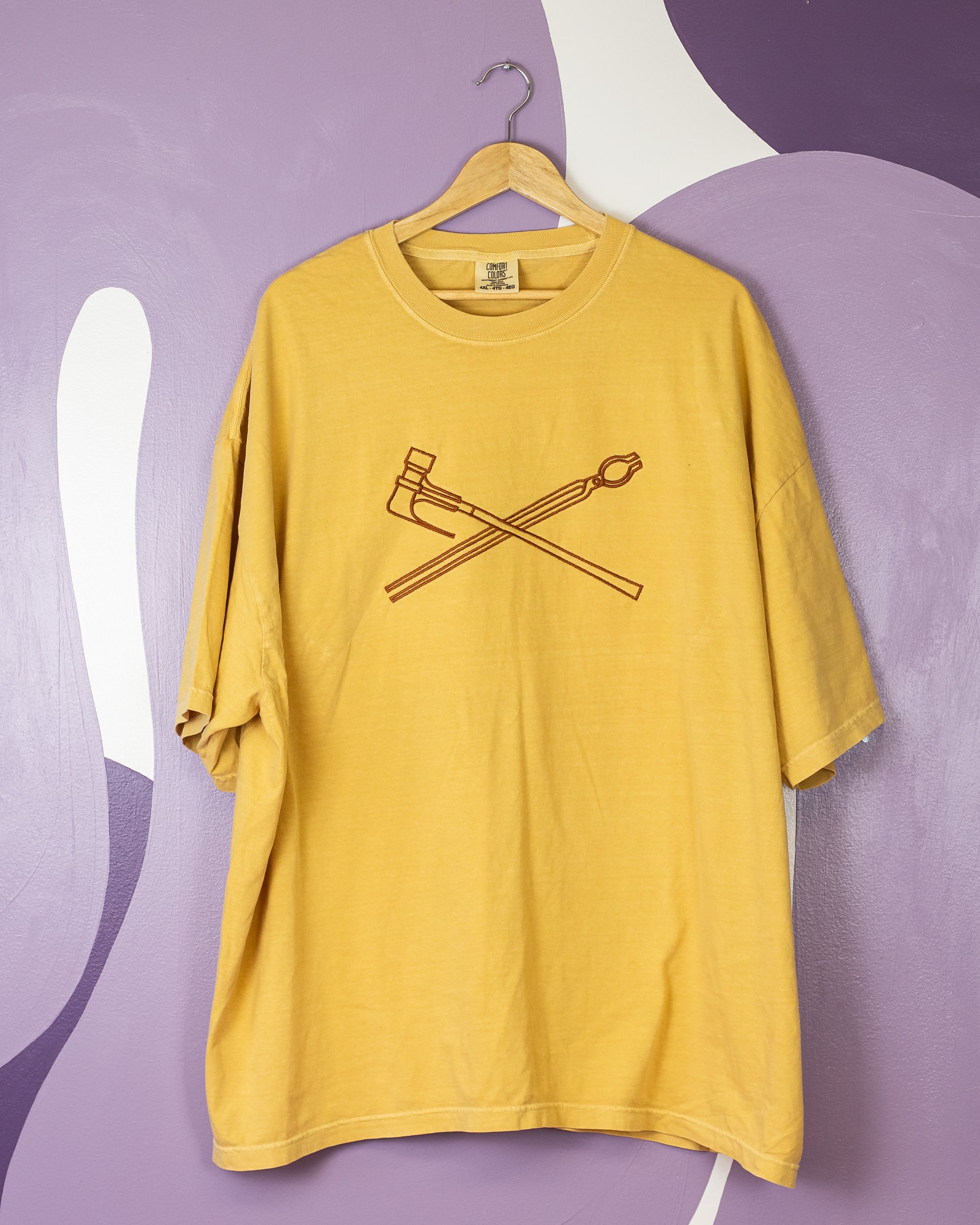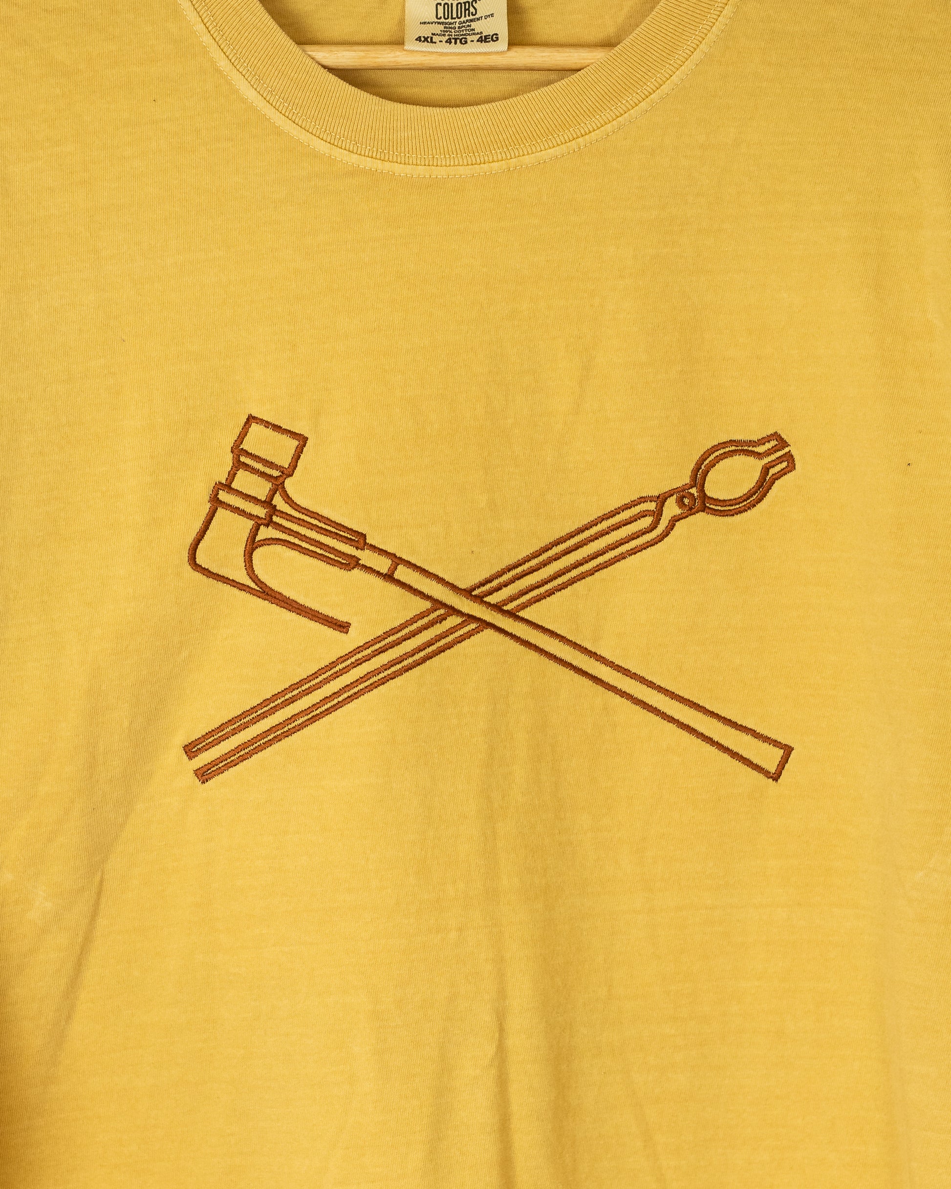 Embroidered with thread on a Lane Seven brand hoodie or yellow Heavyweight Tee by Comfort Colors.