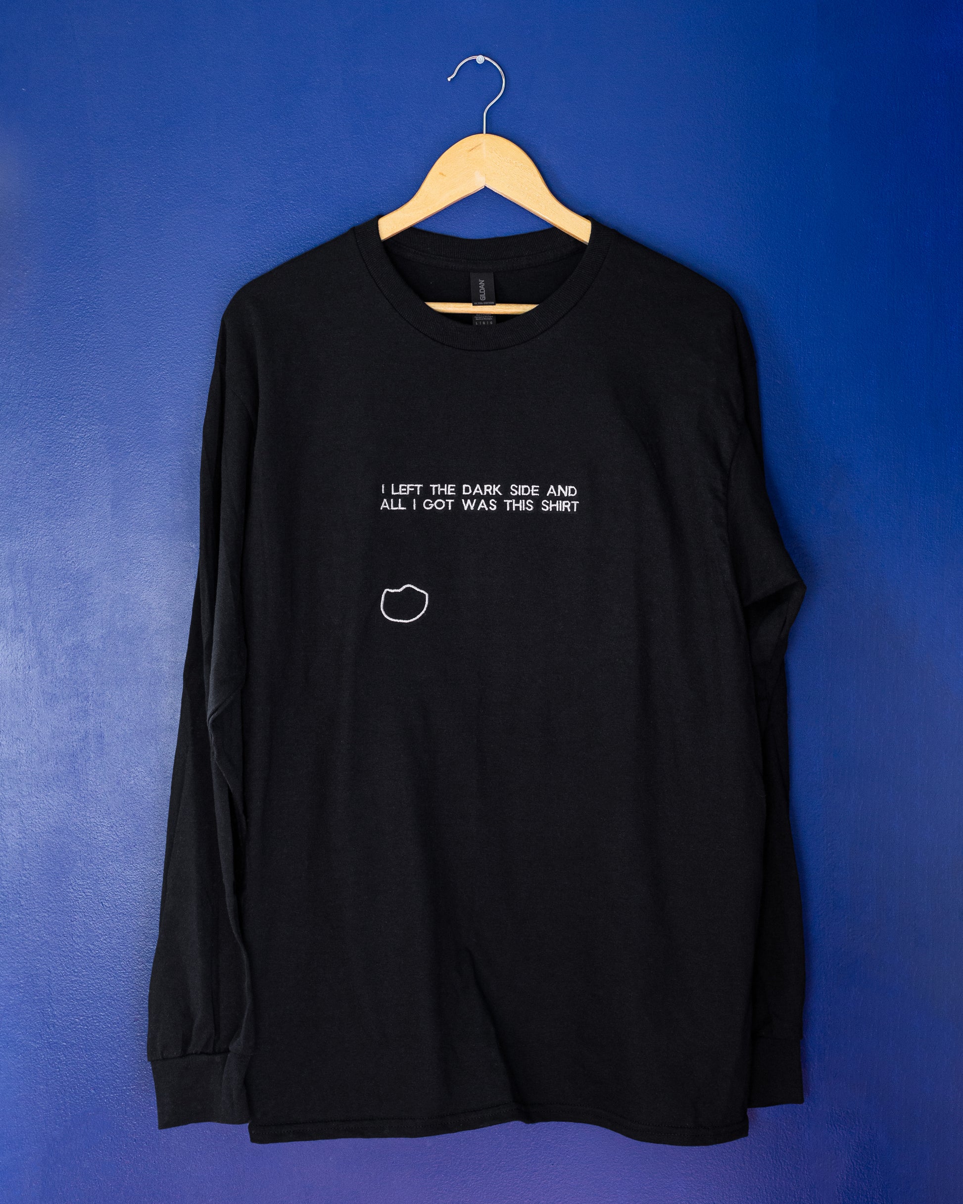 I left the dark side and all I got was this stupid shirt. Embroidered with white thread on a grey Gildan long sleeve tee