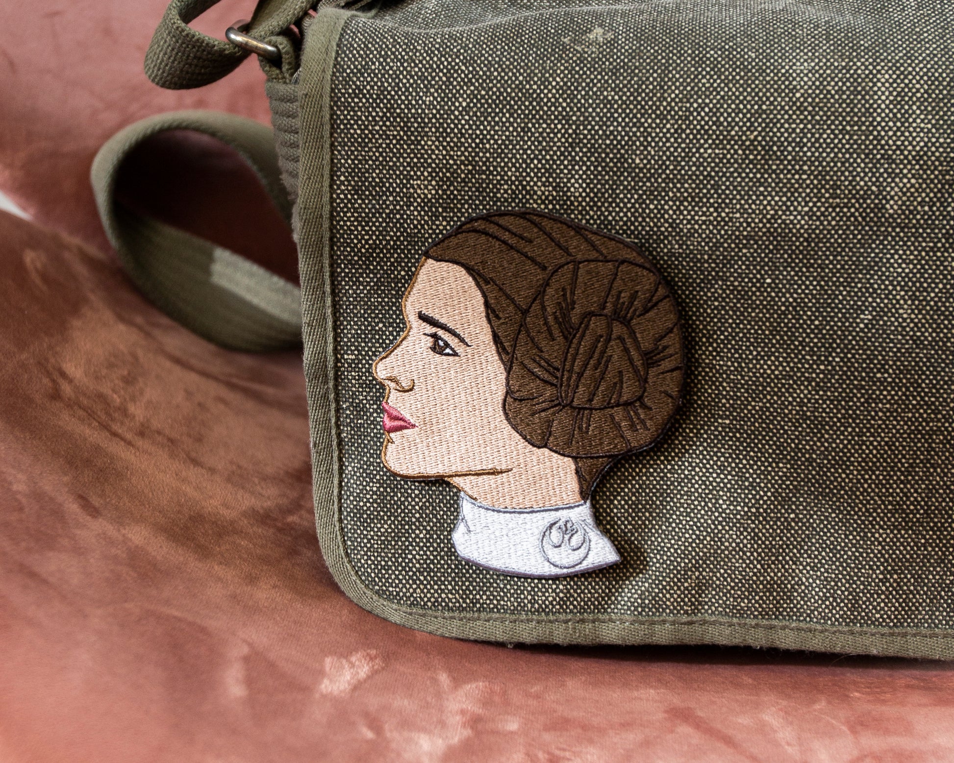 Everyone's favorite badass space princess is now a patch! Show your love for Leia with this iron on patch. Perfect for a jacket, backpack, or just to display.
